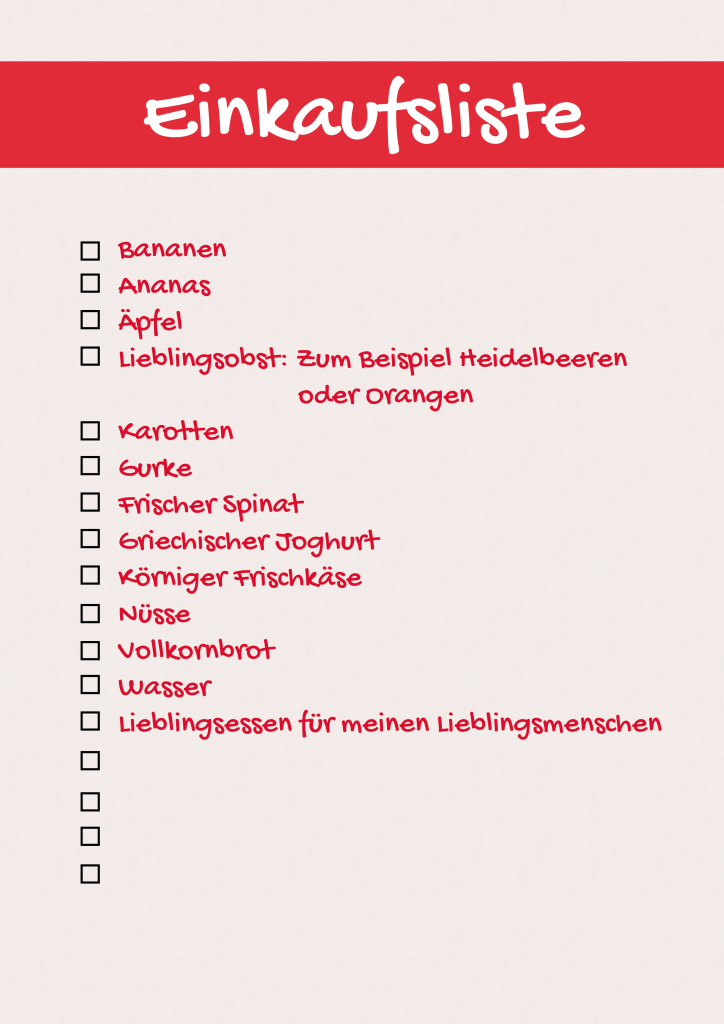 Für den Einstieg haben wir dir schon einmal eine Einkaufsliste vorbereitet mit den wichtigsten Basics: einfach speichern, ausdrucken und los geht’s!