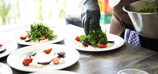 Den Rucola und die Brunnenkresse von groben Stielen befreien und waschen. Bei den Erdbeeren das Grün entfernen und ebenfalls waschen. Danach, je nach Größe, halbieren oder vierteln und mit Salz, Zucker, frischem Pfeffer aus der Mühle und Olivenöl würzen und marinieren.