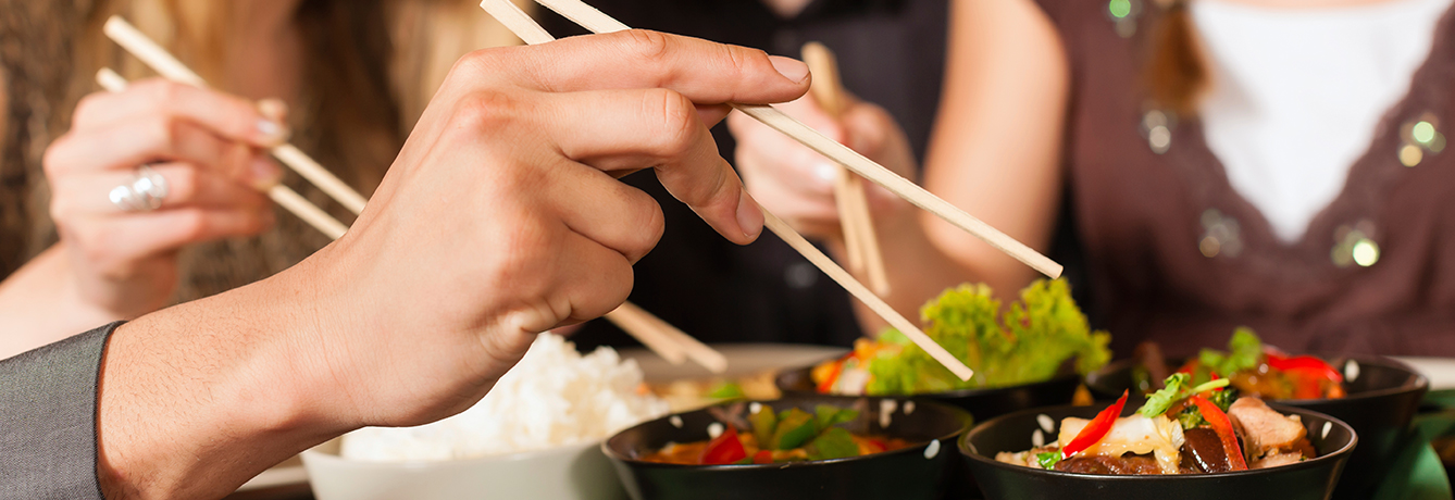 Researchers at Cornell University observed 213 diners at a Chinese food buffet. Among the findings: Slimmer patrons were more than twice as likely to sit at a booth (vs. chairs). Heavier diners were 50% more likely to sit facing the buffet. As for the main event, 71% of slim diners scoped the buffet before serving themselves, while two-thirds of the obese dove right in. One-fourth of normal-weight diners used chopsticks, compared to less than a tenth of the obese. Normal-weight people were also more likely to place napkins in their laps — and spend more time chewing their food.
