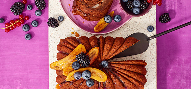 Servi con fettine di baby banana caramellate velocemente in un filo di miele e con frutti di bosco a piacere.